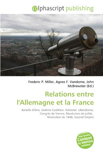 Read Online or Download Relations entre l'Allemagne et la France: Bataille d'Iéna, Sixième Coalition, National- Libéralisme, Congrès de Vienne, Révolution de juillet, Révolution de 1848, Second Empire ebooks in EPUB and Mobi Format. Relations entre l'Allemagne et la France: Bataille d'Iéna, Sixième Coalition, National- Libéralisme, Congrès de Vienne, Révolution de juillet, Révolution de 1848, Second Empire. Author by ...