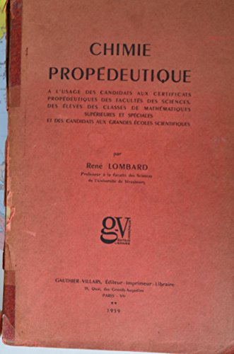 Read Chimie propédeutique : à l'usage des candidats aux certificats propédeutiques des facultés des sciences, des élèves des classes de mathématiques supérieures et spéciales et des candidats aux grandes écoles scientifiques, par René Lombard PDF